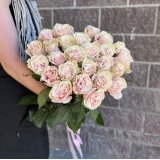 Впечатляющая цветочная корзина состоит из 30 розовых роз и 25 кустовых нежных роз.