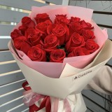 Нежный букет из гвоздик розовых и бежевых оттенков в современной упаковке. Общее количество цветов в букете 25 шт.