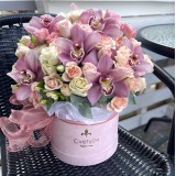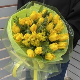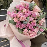 Очаровательный букет состоит из 17 веток кустовой розы, современная упаковка.