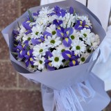 Букет из хризантем и ирисов "Первое впечатление"