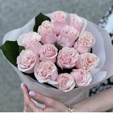 Яркий букет из 21 желтого тюльпана в декоративной упаковке.
