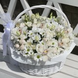 Корзина из эустомы и орхидей "Легкий мотылек"