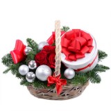 Милый букет из кустовых и одноголовых роз, герберы, гвоздик, маттиолы, зелень в декоративной упаковке. Общее количество 11 шт.