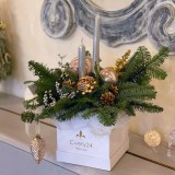 Композиция в коробке состоит из 11французских роз, 3 нутана, 3 ветки илекса, сухоцветы красные, 1 амариллис, эвкалипт.