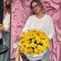Цветочная корзина невероятной красоты состоит из 23 пионовидных кустовых роз и декоративной зелени.