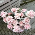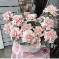 Шикарная композиция в корзине из 21 розовой французской розы с декоративной зеленью.