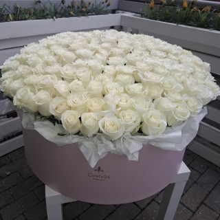 Шикарный букет состоит из 85 веткок кустовой розы.