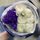 Яркий букет из 41 кустовых роз в декоративной упаковке.