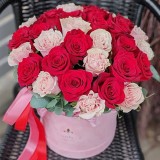Милый букет состоит из сочетания 7 веток хризантемы, 12 гвоздик, 4 веток кустовой розы в декоративной упаковке.