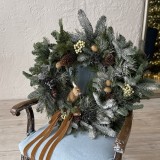 Корзинка пасхальная состоит из большой пасхальной булки, пряников, декоративной игрушки зайки, грибов маринованных, сыра, помидоров маринованных, шоколадки, ветки вербы и декоративных пасхальных элементов.