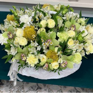 Милый букет из 7 веток кустовой пионовидной розы и 6 веток матиолы. Общее количество 13 шт.