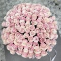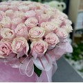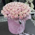 Шикарный букет из 101 розовой розы в шляпной коробке. Цвет и оттенок коробки может отличаться от образца. Бесплатная доставка по Минск, в областные и районные города Беларуси доставка платная.